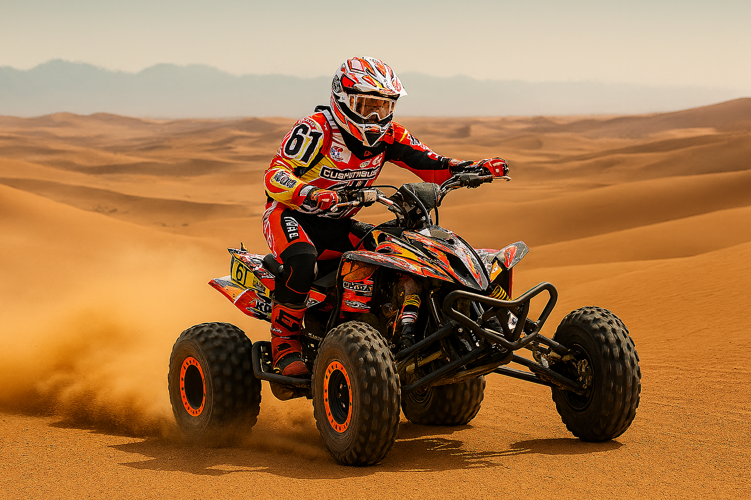 - Les quads doivent avoir une autonomie en carburant de minimum 250 km. En principe les points de ravitaillement en carburant se trouvent entre 200 et 220 km l’un de l’autre, mais il faut compter sur les kilomètres parcouru en plus lors d’une erreur de navigation et/ou de la surconsommation dans les dunes.